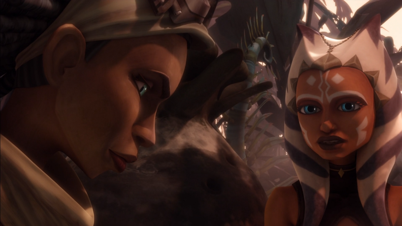 Наверное, уже давно пора перестать удивляться, но A War on Two Fronts в очередной раз поражает тем, на сколь высокий уровень сложности и многоплановости материала вышли The Clone Wars в последние годы. И речь не только об очередном улучшении технической стороны проекта - хотя, видит бог, работа Джоэла Эрона с тенями и освещением, а также более нюансированная лицевая анимация заслуживают соответствующих профессиональных наград. Прежде всего удивляет драматургия: в пределах одной 22-минутной серии Крис Коллинс (известный, между прочем, по The Wire и Sons of Anarchy) при поддержке Дэйва Филони и его команды умудрились внятно показать сразу несколько самостоятельных, разнообразных и при этом взаимосвязанных сюжетных линий - что особенно удачно, действуют они как в качестве заготовки на будущую арку, так и в рамках самостоятельной истории. Столь крепкий сценарий редко встречается не только в мультсериалах, но и во взрослом телевидении. Генеральный "боевой" сюжет про сопротивление сепаратистской оккупации задает должный фон и в целом выполнена в лучших традициях сериала. Квази-любовный треугольник между Асокой, Лаксом и его боевой подругой, наоборот, весьма необычен для общей мета-линии главной героини - и тем приятнее, что прорабатывается он подробно, ненавязчиво и эмоционально убедительно. В свою очередь, его оттеняет мужское соперничество между приблудным "политиком" Лаксом и самопровозглашенным лидером повстанцев, в ходе которого они (временно?) обретают взаимное уважение. В дополнение ко всему этому, данный эпизод немного приоткрывает завесу тайны над тактическими аспектами Войны Клонов: право, кто раньше задумывался о принципах действия щитов дроидек, двухуровневости танков ААТ и важности хэдшотов? Наконец, пунктирно намечен весьма перспективный мотив о (не)допустимости подготовки Республикой террористов/борцов за свободу - это не только позволяет создателям сериала в очередной раз намекнуть на реальную американскую военную доктрину, но и показать продолжающуюся эволюцию Энакина, который с азартом берется даже за столь неоднозначную операцию. Пятый Сезон начинается на очень, очень многообещающей ноте. Его мне раньше смотреть не доводилось, и потому тот факт, что A War on Two Fronts удалось меня настолько впечатлить и заинтересовать - хороший знак. P.S. В финале с удовольствием отметил новую аранжировку любимой музыкальной темы из Innocents of Ryloth. -------------------- "Невинный блаженец" © D.G.